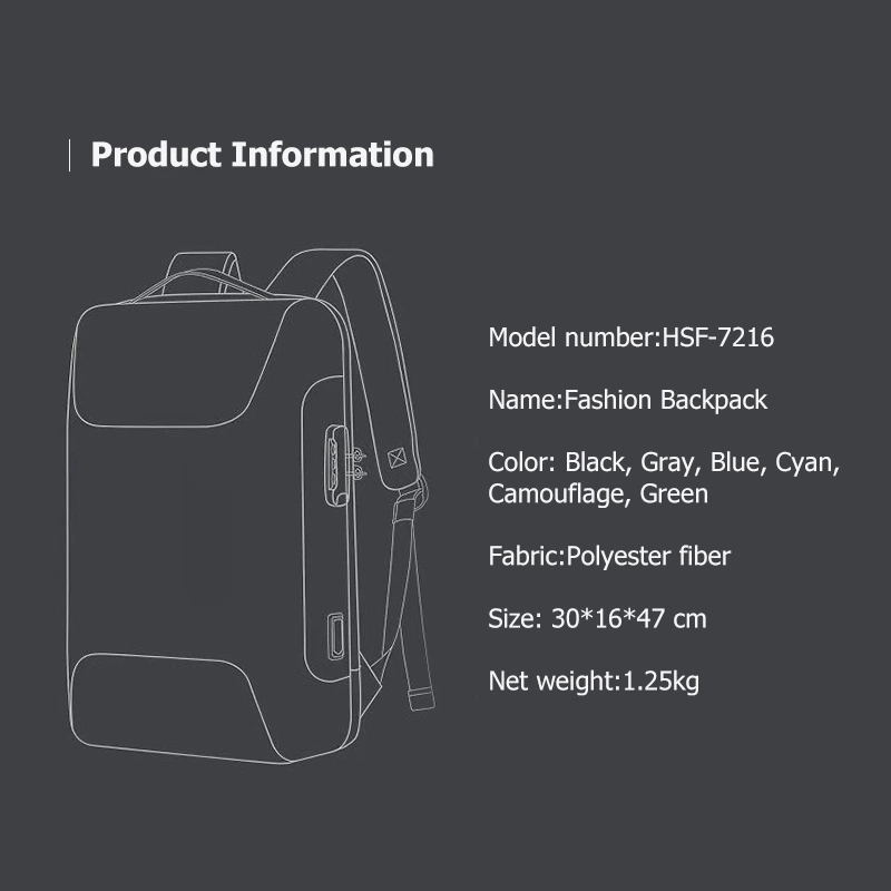 Engineered for security and endurance, this backpack features an anti-theft code lock and wear-resistant Oxford fabric with strong waterproof protection. Its three-dimensional storage design includes a dedicated laptop compartment and hidden side pockets, making it a reliable choice for travel, commuting, and daily use.