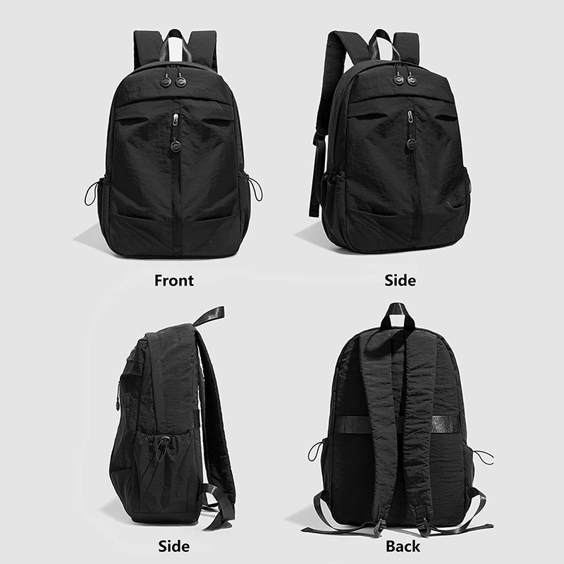 Designed with durable waterproof Oxford fabric, this bag safely holds laptops up to 14 inches and organizes essentials across multiple compartments. Its functional layout includes inner slip and hidden zippered pockets, plus exterior side pockets with tightening straps and a front vertical zipper, offering versatile everyday convenience.