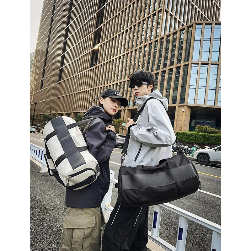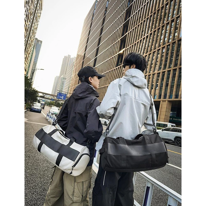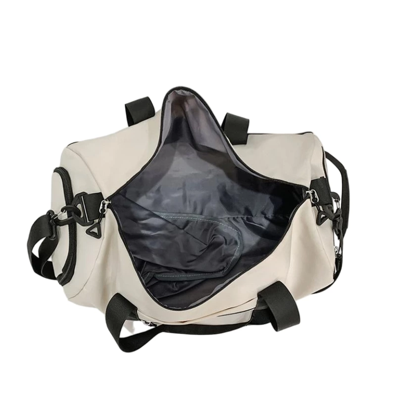 Perfect for short trips, this durable black duffle is made from water-resistant, anti-scratch nylon with a spacious main compartment and convenient side pockets. Designed for quick, easy packing and on-the-go access, it keeps your travel essentials secure and organized.