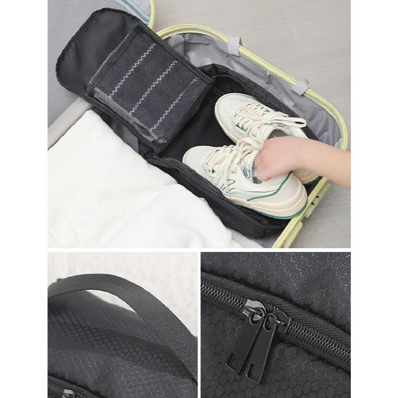 A foldable, lightweight travel bag made from durable waterproof Oxford fabric. With large capacity storage that fits shoes up to size 46 and an internal mesh pocket, it’s designed for compact, organized packing on trips, gym visits, and getaways.