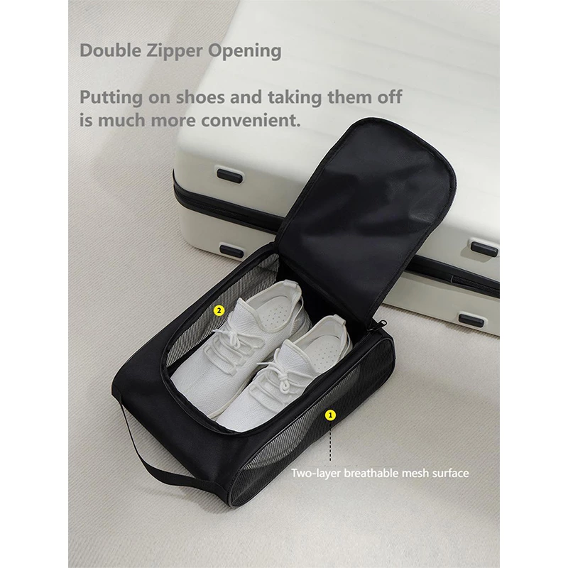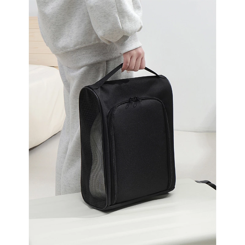 A spacious duffle bag featuring a wide double-zipper opening and breathable mesh side panels for airflow. Built with a sturdy webbing handle and waterproof Oxford fabric, it combines durable storage with comfortable carry for gym, travel, and sports use.