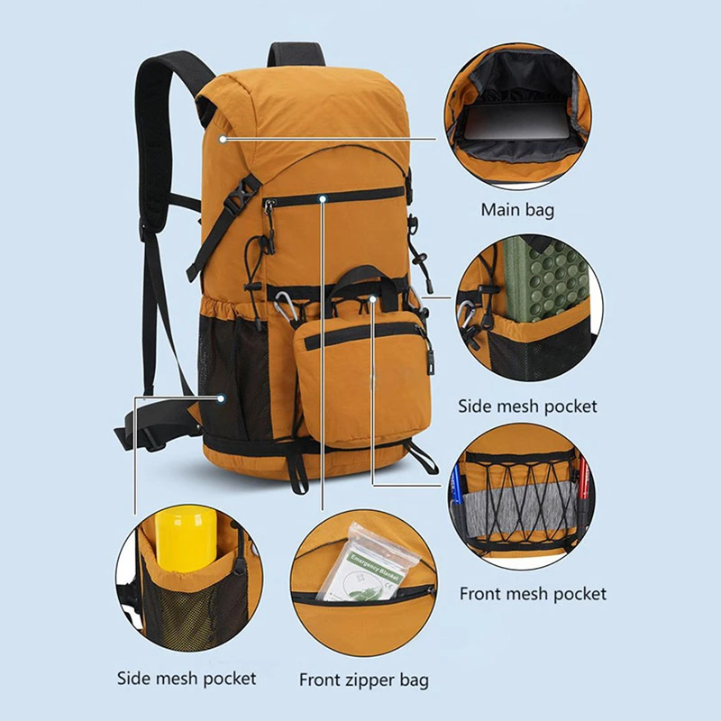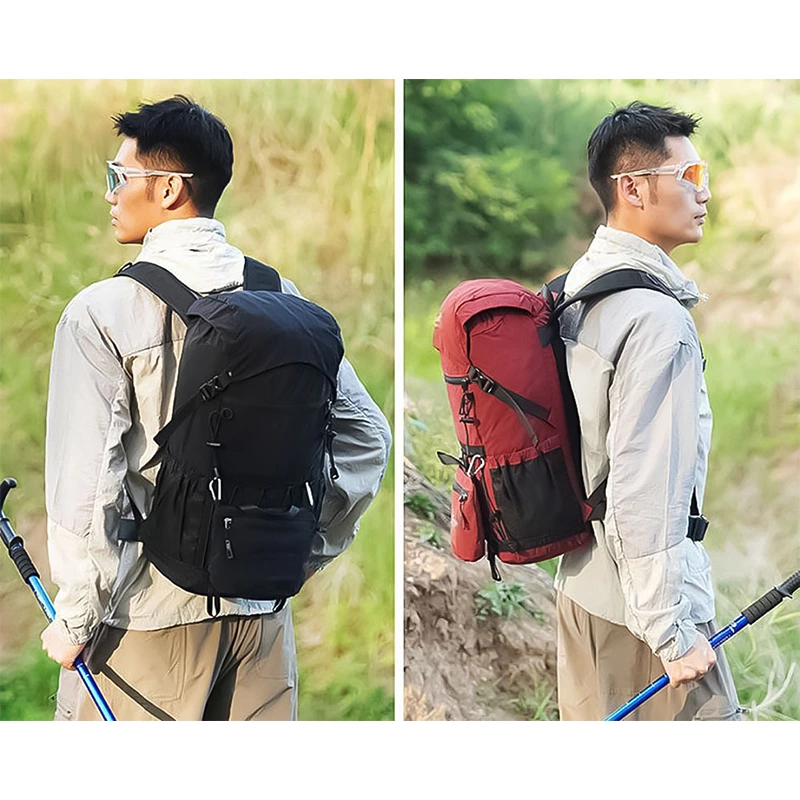 Designed for short trips and day hikes, this 30L lightweight backpack combines large capacity with organized versatility. Its waterproof Oxford fabric and multiple access pockets allow gear to be stored separately and retrieved easily, making it a reliable companion for 1-3 day adventures.
