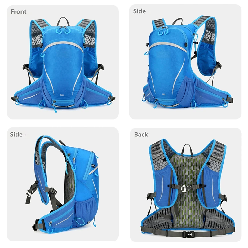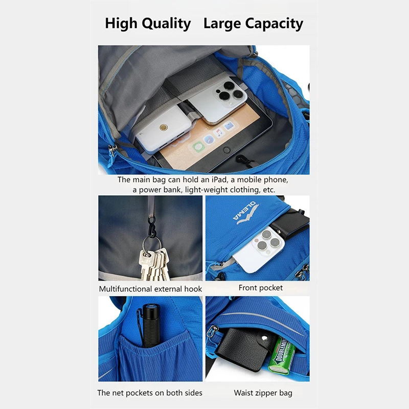 Designed for high-visibility activity, this breathable, waterproof backpack features an independent water bag compartment and multiple reflective strips for safety. With side elastic pockets and organized storage, it offers lightweight, dry comfort for runs, hikes, and fast-paced commutes.