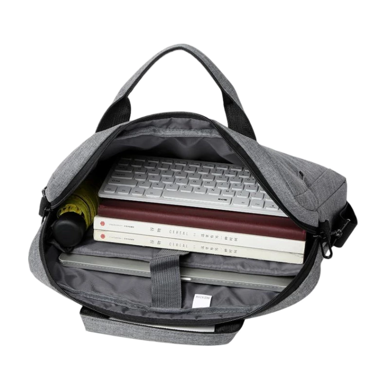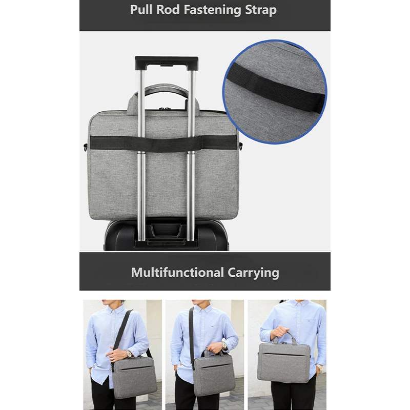 Designed for professional mobility, this laptop bag features a comfortable padded handle, durable dual-way zippers, and a practical trolley strap for seamless travel. Securely fitting up to a 15.6-inch laptop, it offers organized, hassle-free carry for business trips and daily commutes.