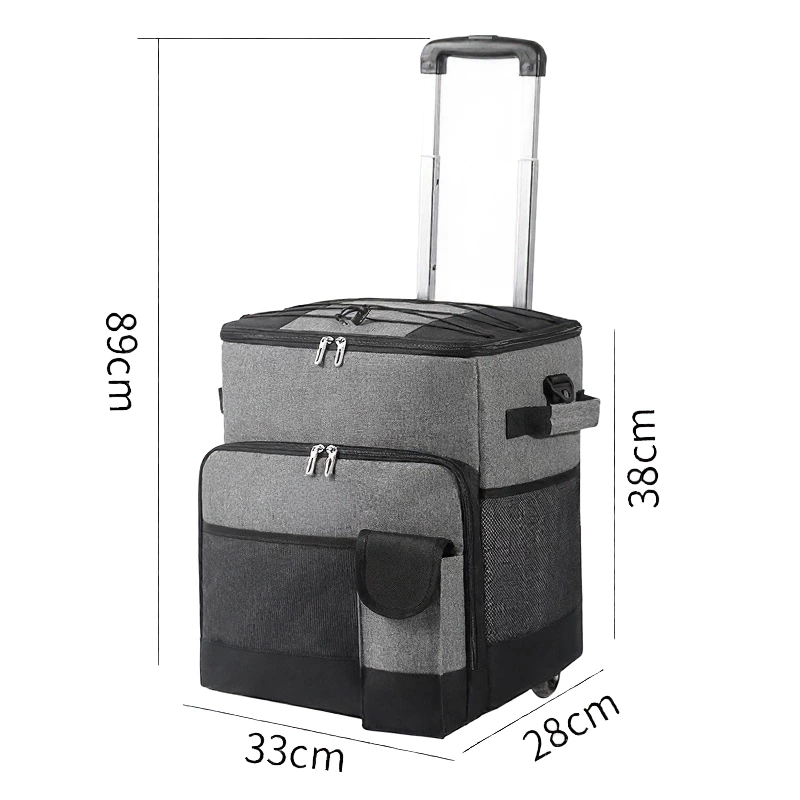 A versatile insulated meal carrier with wheels, this 35L bag keeps food warm for 4-8 hours and ensures freshness with its spacious, organized interior. Built with a reinforced handle, smooth-rolling design, and multiple access pockets, it combines thermal performance and easy mobility for picnics, lunch commutes, grocery trips, and family outings.