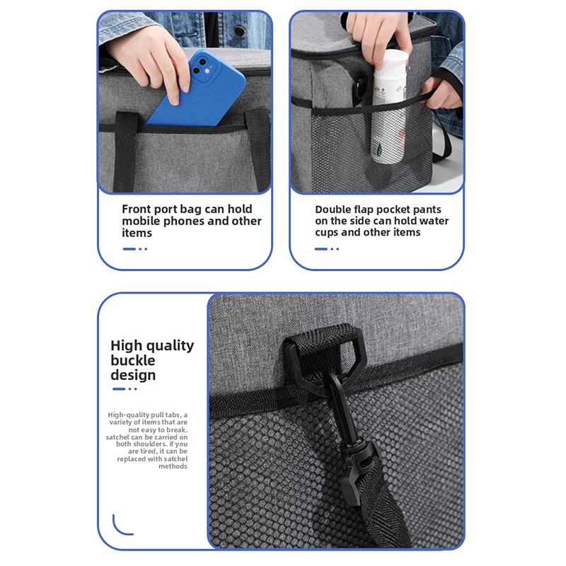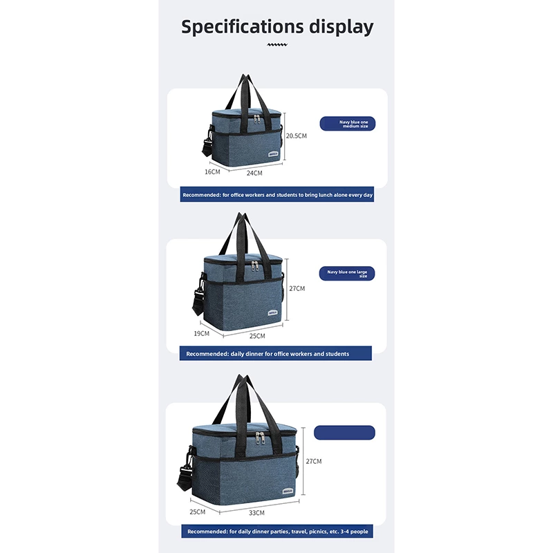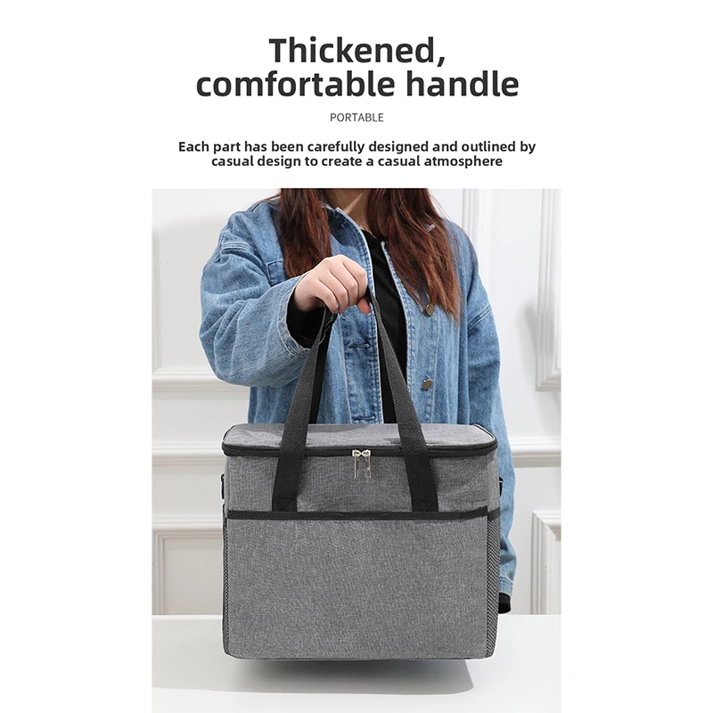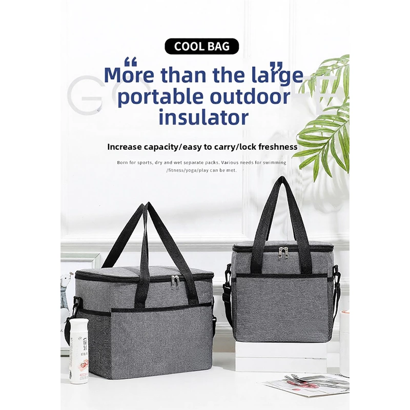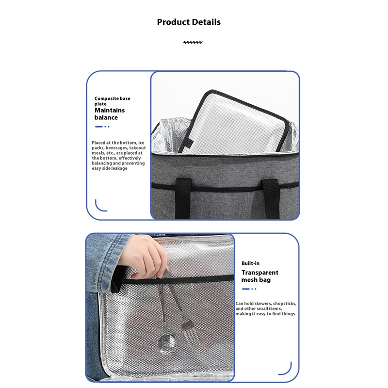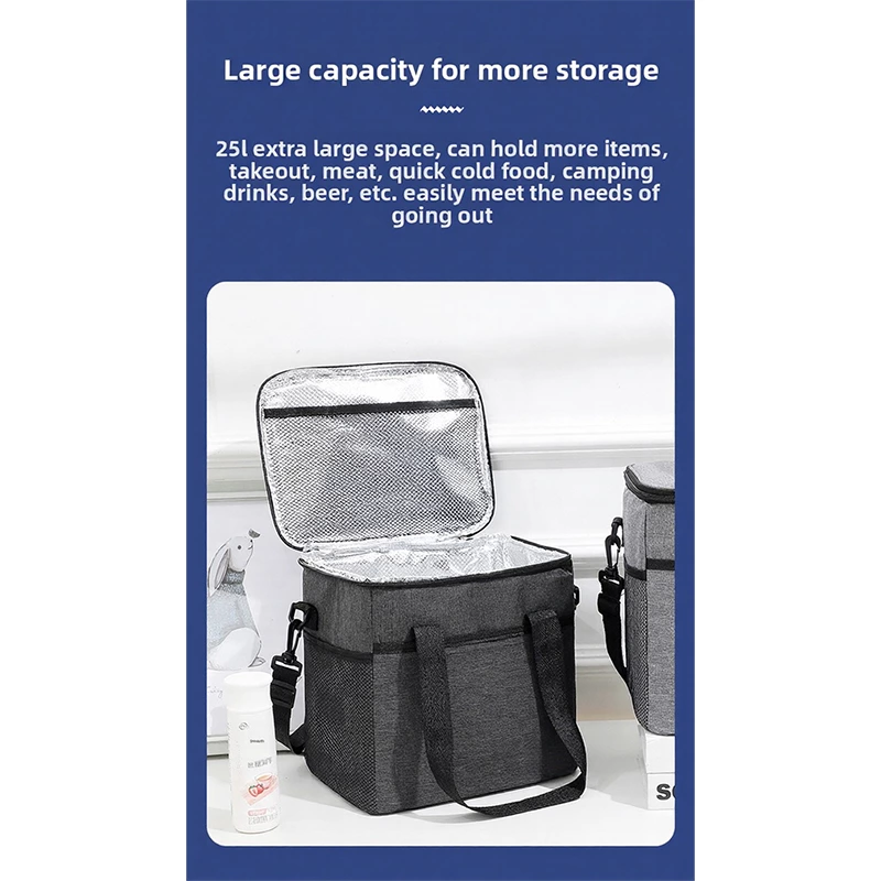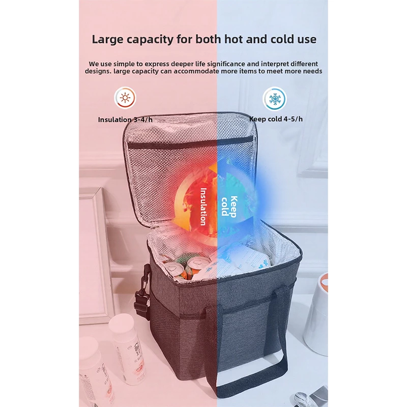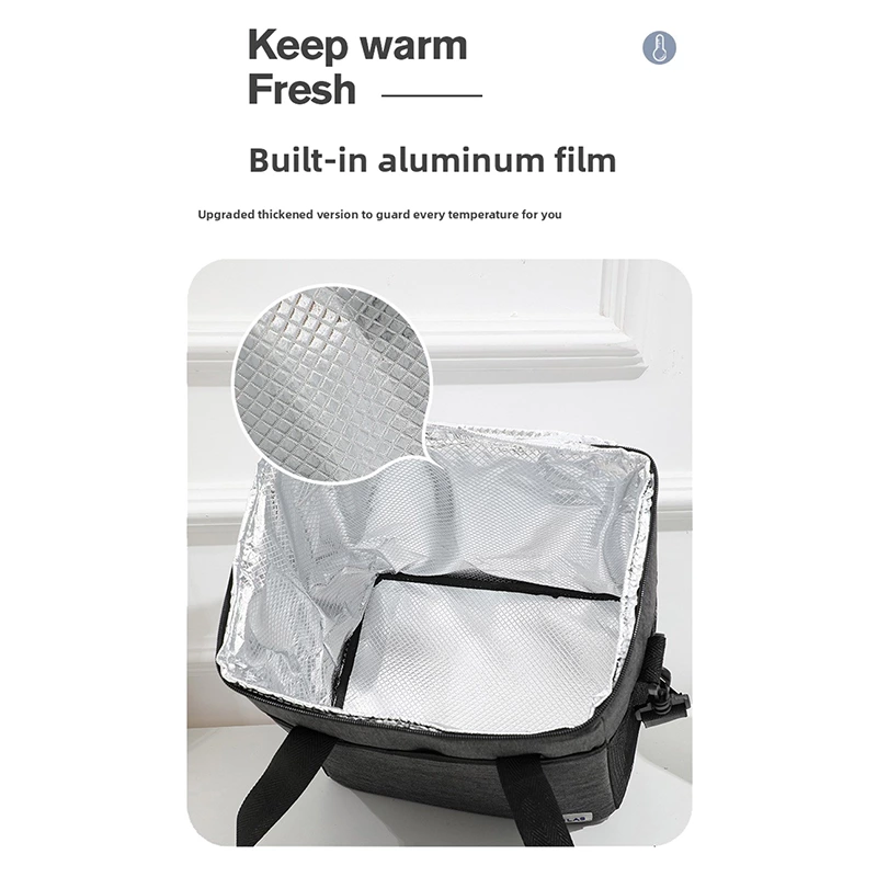 A square insulated lunch tote with dual handles, featuring an internal aluminum film to lock in temperature for hot or cold items. Made from durable, water-resistant fabric, it offers organized compartments in a structured, easy-to-carry design-ideal for work lunches, picnics, and daily meals on the go.