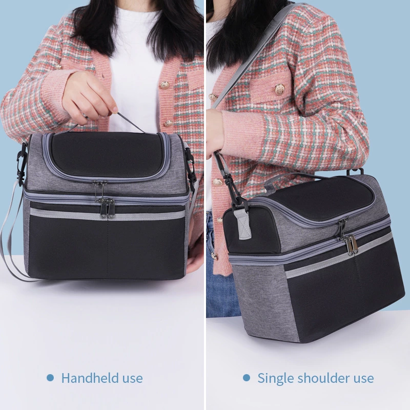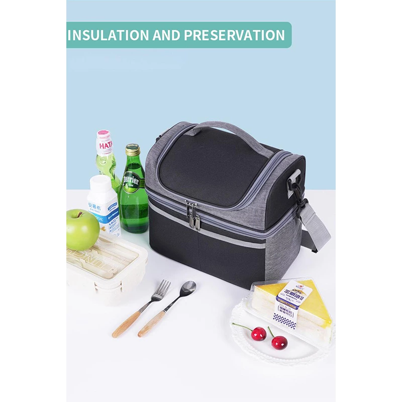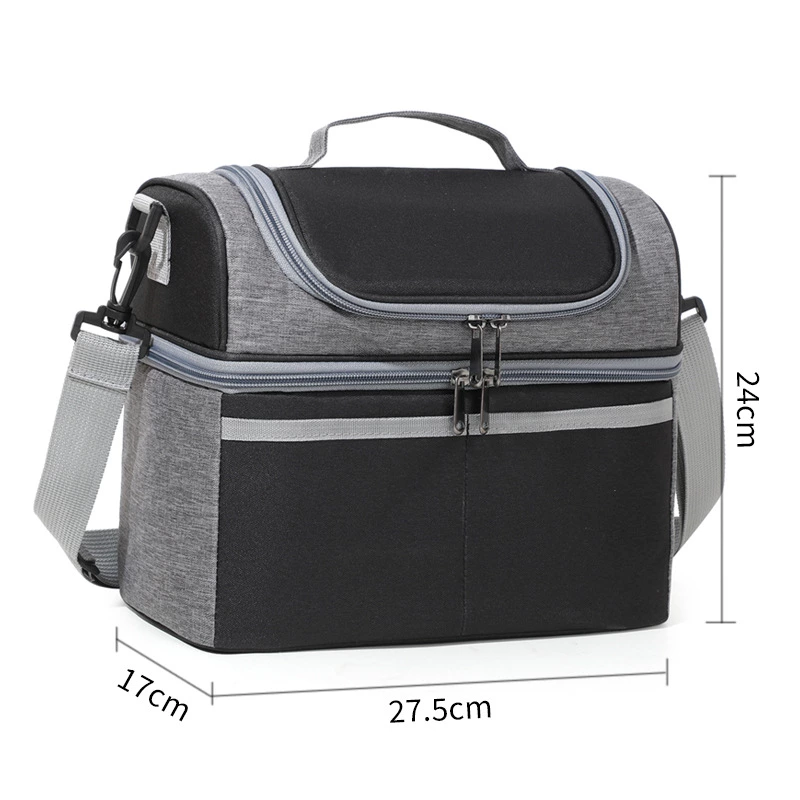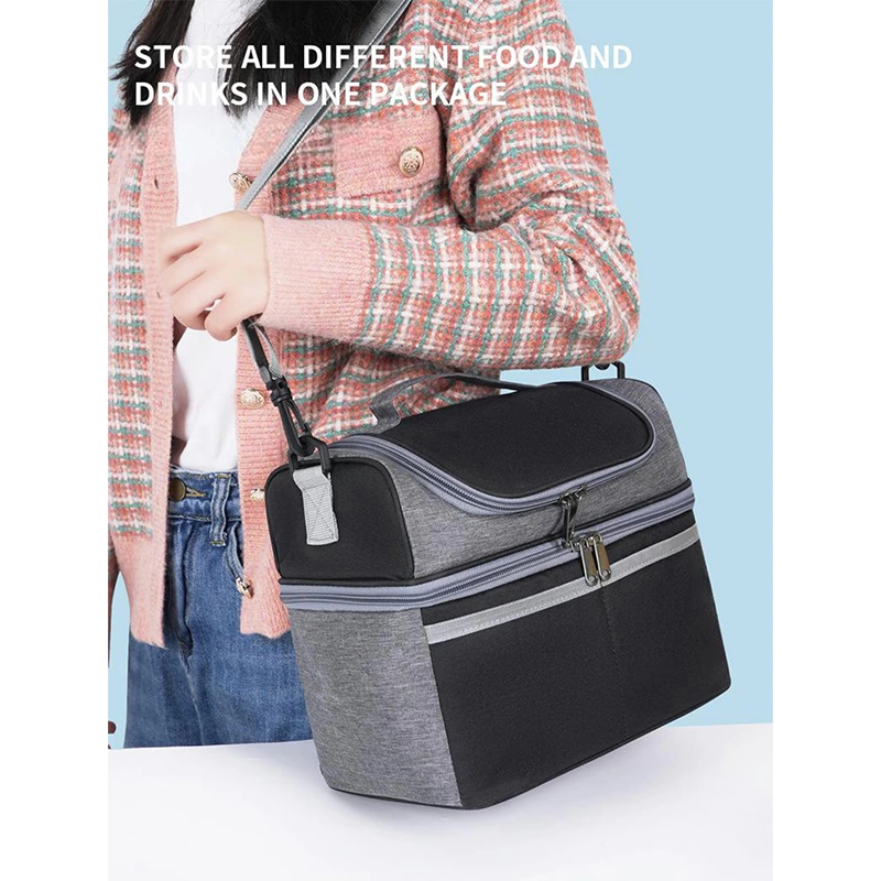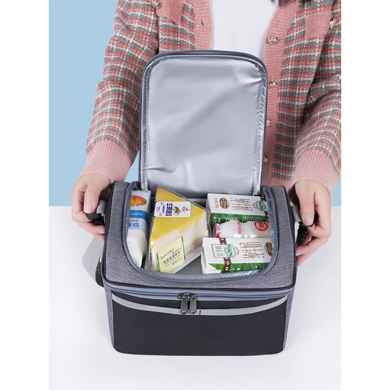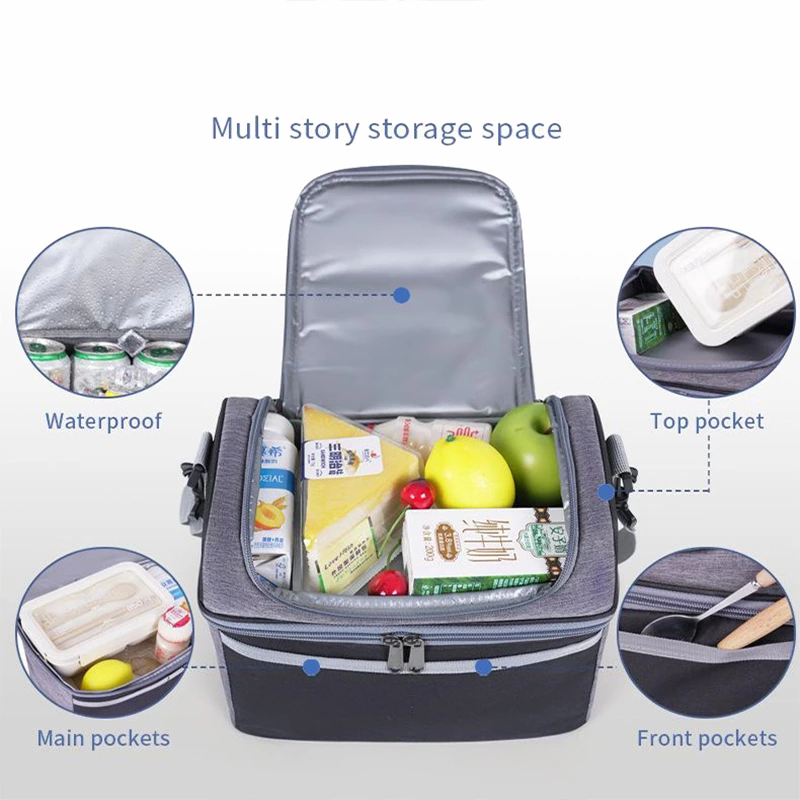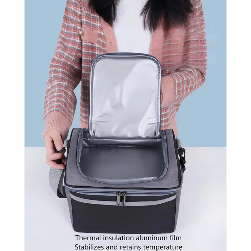 A versatile thermal lunch bag that keeps food warm for 4-6 hours, cold for 6-8 hours, and fresh for up to 12 hours. Made from waterproof cationic fabric, it features a spacious main compartment and front zipper pockets for organized, on-the-go meal storage.