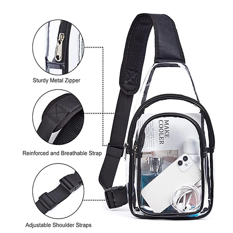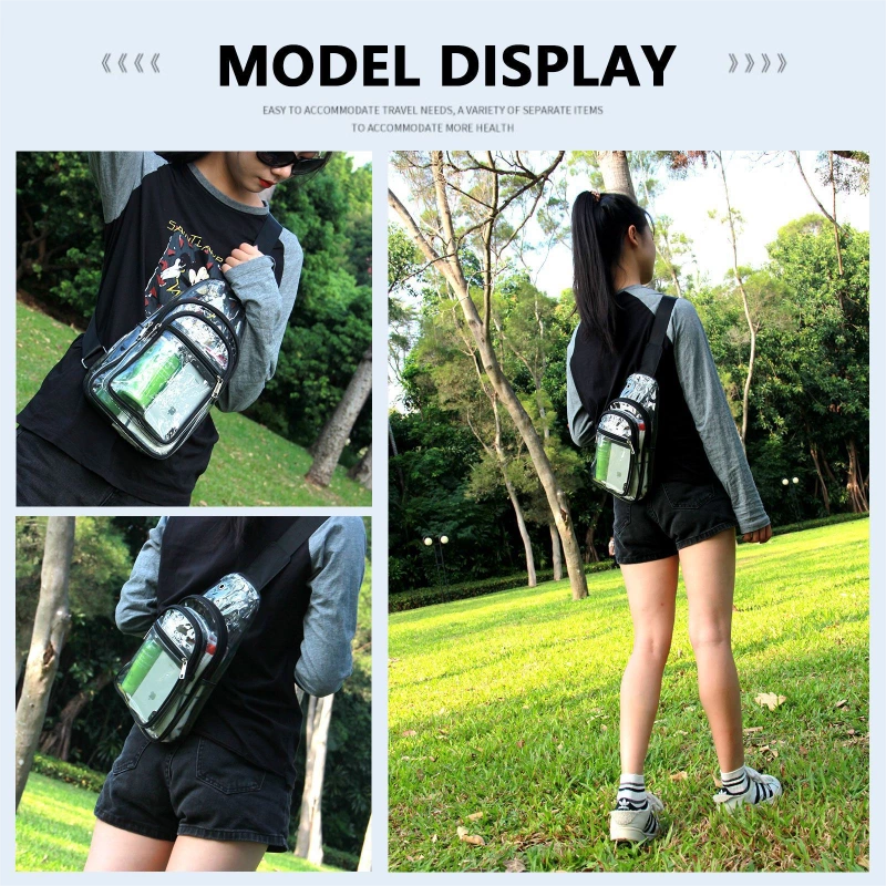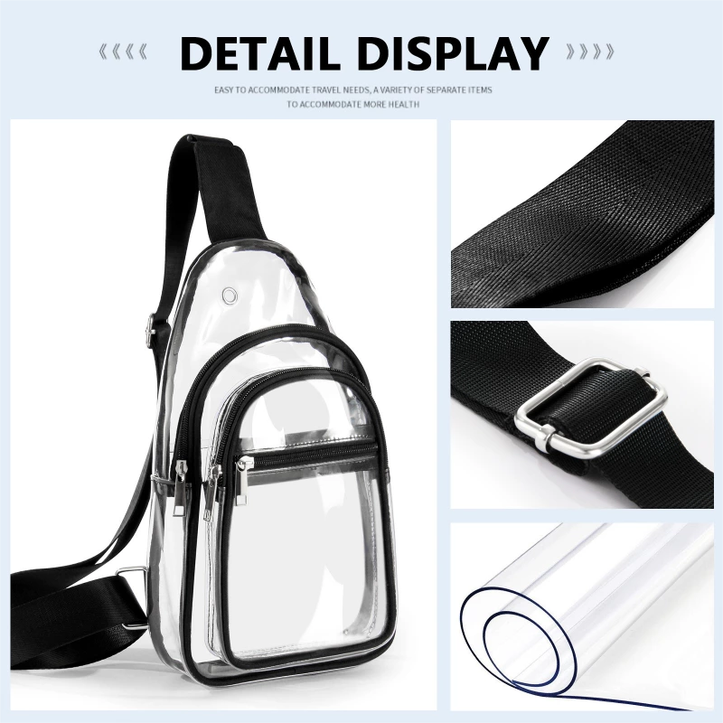 A stylish and practical organizer, this clear PVC chest bag is waterproof, stain-resistant, and easy to clean for daily commutes and sports. Perfect for travel, hotel stays, and makeup storage, its transparent design keeps essentials visible and secure in a versatile, unisex crossbody style.