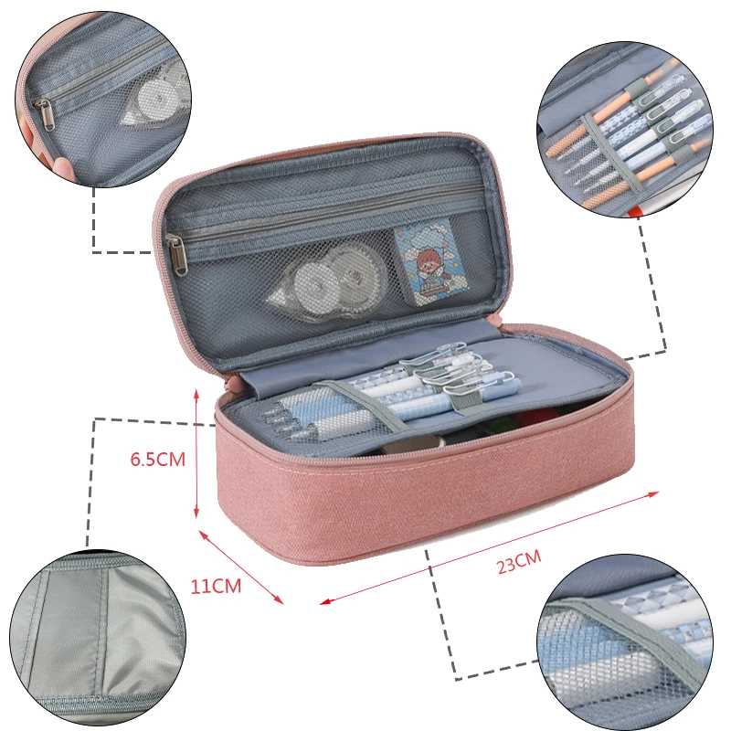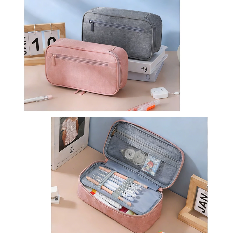 Crafted with fine detail, this compact pencil case features a smooth, easy-glide zipper and neat stitching for lasting use. Its space-saving design includes interior webbing and a mesh pocket, offering organized, portable storage for stationery, tools, and daily small essentials.