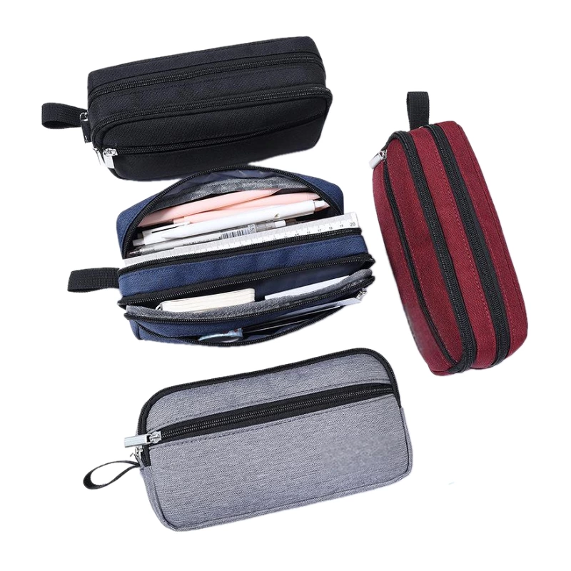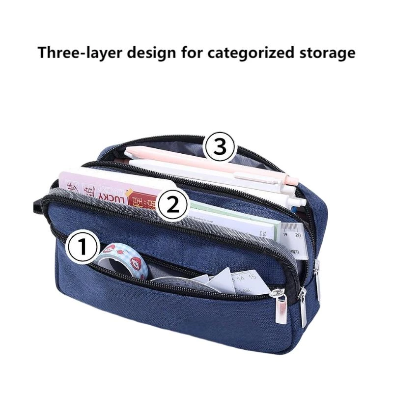 A well-organized and durable stationery case, this 3-layer design keeps writing tools neatly sorted with neat, stylish stitching. Featuring a comfortable handle and multiple front pockets, it offers hassle-free, portable storage for school, work, and daily use.