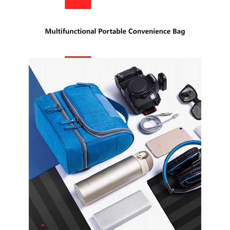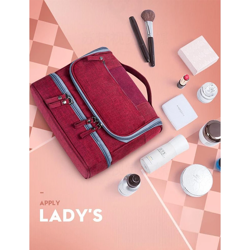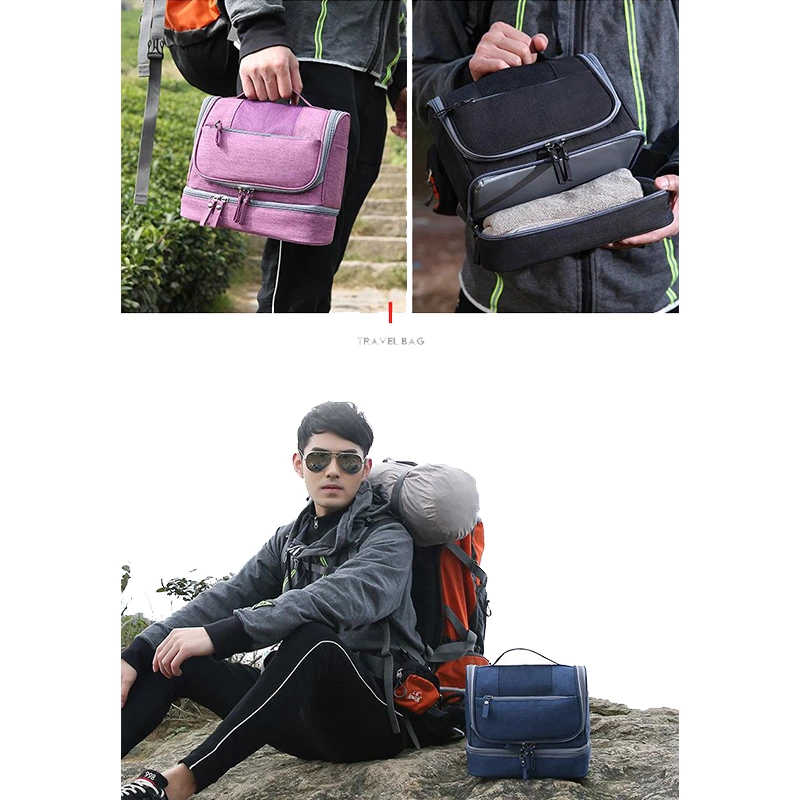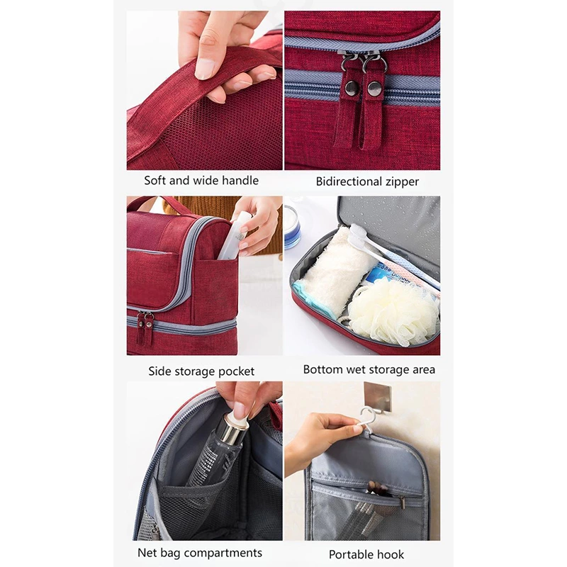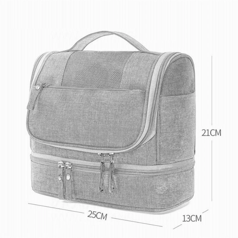 A versatile unisex toiletry bag, this organizer includes a bottom wet-storage area to keep the interior dry and multiple mesh pockets for small items. Equipped with a portable hook, it offers flexible hanging and neatly sorted storage for daily routines, travel, and gym essentials.