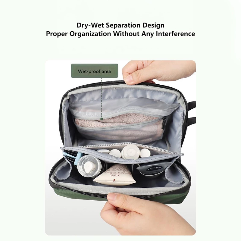 A must-have travel essential, this organizer fits neatly in suitcases and features dry-wet separation to keep items tidy and isolated. With multiple built-in compartments, it delivers hassle-free, organized storage for toiletries, cosmetics, and business trip necessities.