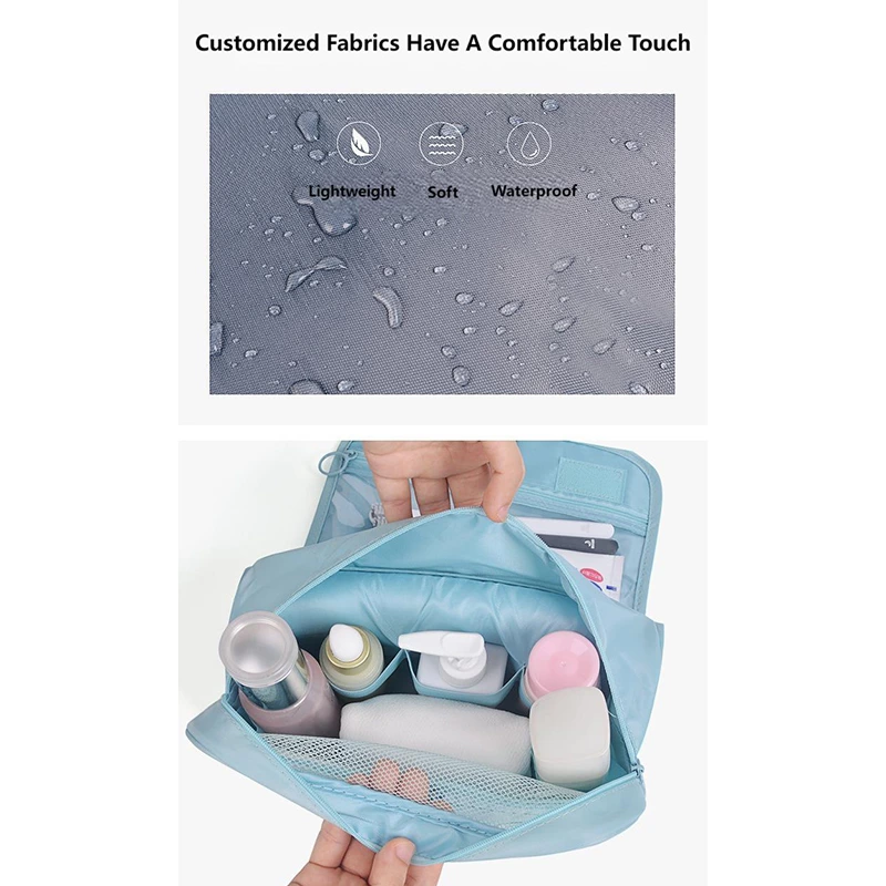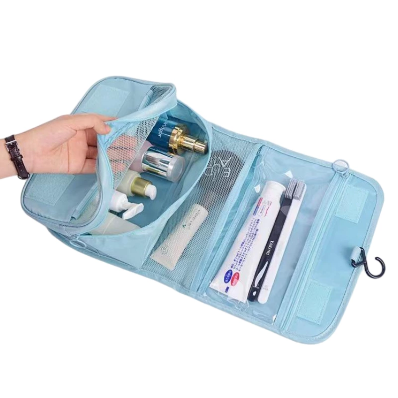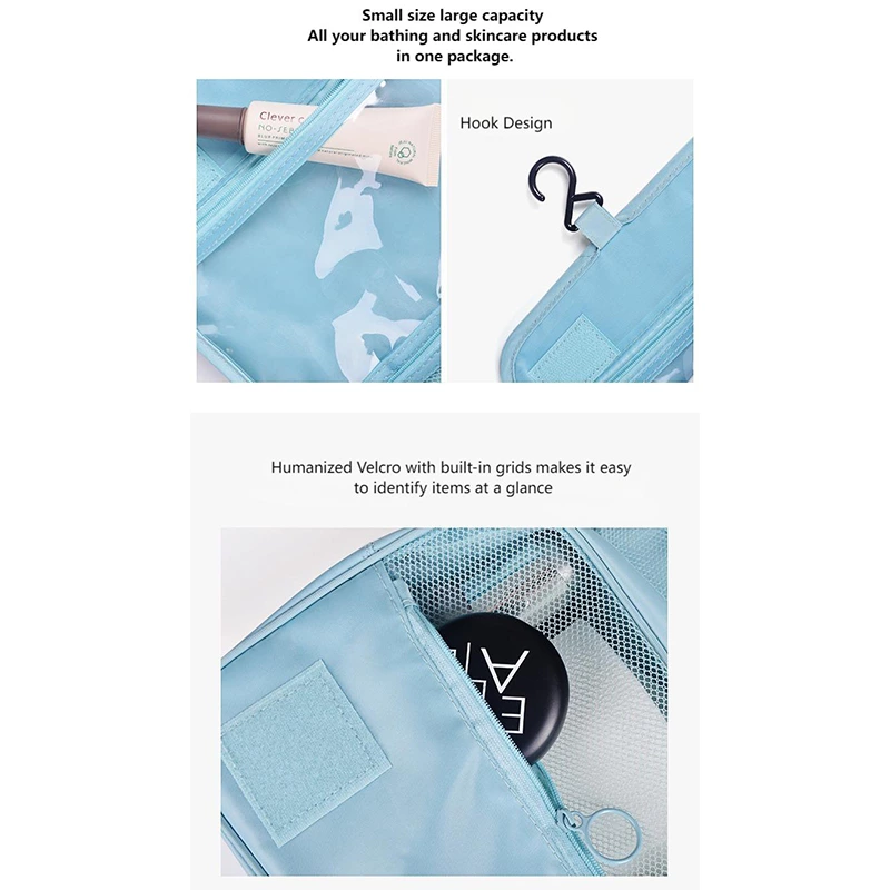 A compact yet spacious toiletry organizer, this bag packs all skincare and essentials in one with a built-in hook for convenient hanging. Featuring a smooth Velcro closure and dry-wet separation, it offers humanized, efficient storage for travel, daily routines, and on-the-go use